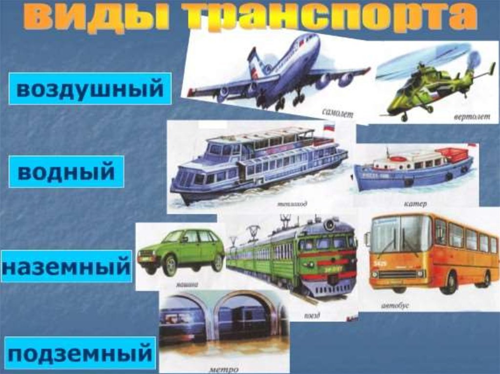 знания о понятии «транспорт». Познакомить с классификацией транспорта: